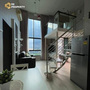 This stylish high-ceiling unit is designed for comfortable city living, featuring 1 bedroom, 1 bathroom, a spacious living room with loft (convertible to an office or extra bedroom), and 2 balconies with Bangna and Sukhumvit views. Fully furnished with built-in wardrobe, sofa, TV, dining table, refrigerator, and washing machine. The Sky Sukhumvit offers 2 swimming pools, 2 fitness rooms, and ample parking space in a private and spacious project area. Prime Location: Close to BTS Udomsuk, opposite BITEC Bangna, next to the upcoming Bangkok Mall, and near Central & Mega Bangna, with easy expressway access. Shops, cafes, and international schools are nearby.