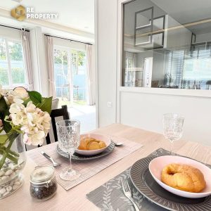 Discover private and peaceful living in this beautifully decorated home for rent at Anya Bangna-Ramkhamhaeng 2. This brand-new 2-bedroom, 3-bathroom house offers 150 SQ.M. of fully furnished space with premium appliances, including a refrigerator, TV, hob, hood, microwave, washing machine, air conditioners, and water heaters. The home sits on a 60 SQ.W. plot and features 2 parking spaces. Located directly behind the clubhouse with only 8 houses in the soi, it provides ultimate privacy and convenience. The Anya Bangna project offers top-tier facilities including a swimming pool, fitness center, large playground, co-working space, and resident lounge. Just 5 minutes from Mega Bangna and major highways to the city, with easy access to BTS Bangna via shuttle. Surrounded by international schools, golf courses, and a range of shops and local eateries, this home is perfect for modern family living.