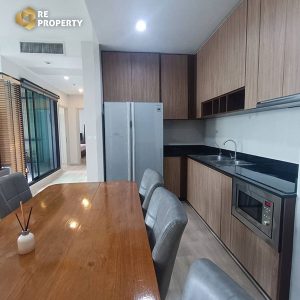 This exclusive 4-bedroom, 4-bathroom condo at The Capital Ekamai Thonglor offers 200 sq.m. of living space, occupying the entire 6th floor with high ceilings and an open New Phetchaburi Road view. The residence includes a maid’s room, living and dining areas, kitchen, pantry, and a multi-purpose zone. Enjoy 6 air conditioners, TVs with mini-theatre systems in all bedrooms and the living room, and 4 private parking spaces. A private elevator, glass-door entrance, and direct access to the facilities area on the 7th floor ensure complete privacy.