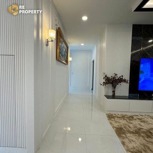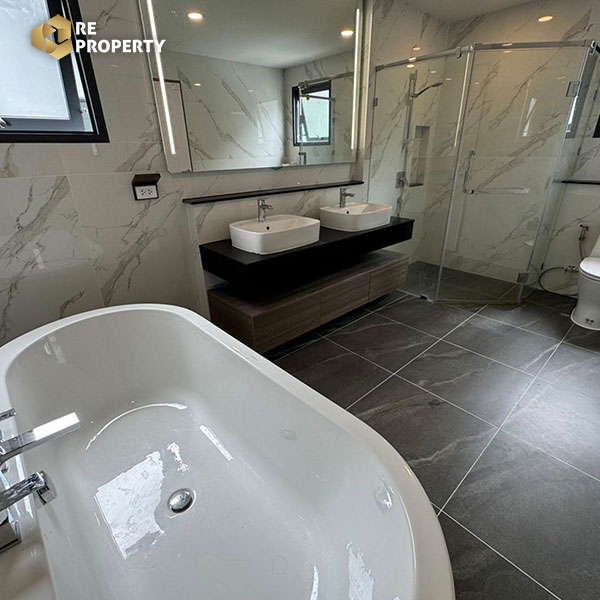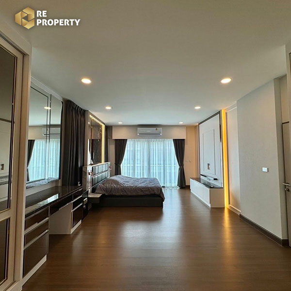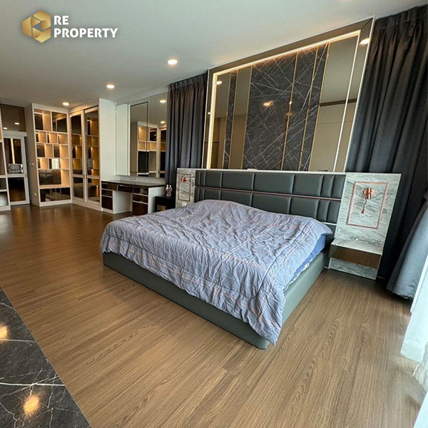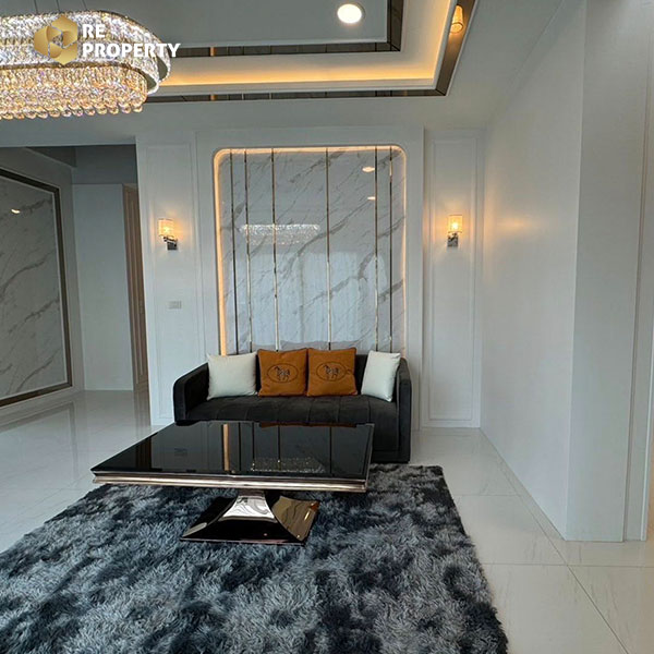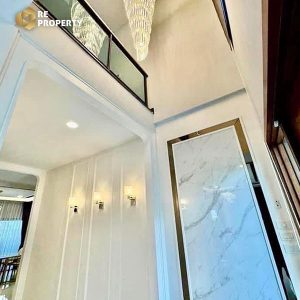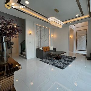 The City Bangna House for Sale and Rent – Corner Unit Near Mega Bangna. This beautifully designed corner house on the main road offers 351 sq.m. of living space on a 78 sq.w. plot, just 800 meters from Mega Bangna and 500 meters from the expressway. The house features 4 bedrooms, 5 bathrooms, a maid’s room with private bathroom, a prayer room, multiple living areas, and a fully equipped kitchen. Feng shui principles are applied throughout, including a landscaped garden with a waterfall, creating a calm and welcoming atmosphere.