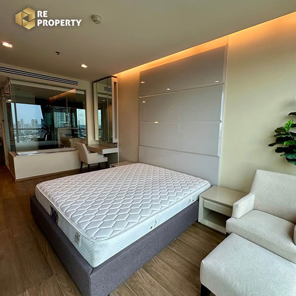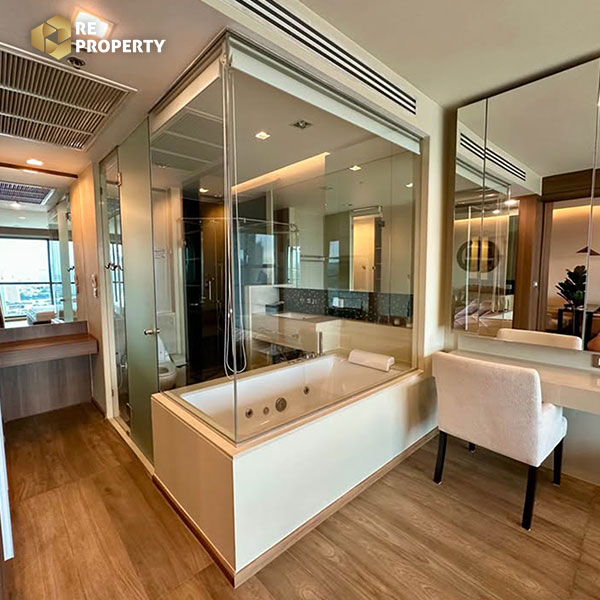 คอนโด 1 ห้องนอนที่เพิ่งรีโนเวทใหม่ในโครงการ ดิ แอดเดรส สาทร 12 ห้องขนาด 56 ตารางเมตร ออกแบบอย่างลงตัวบนชั้น 34 ของอาคาร ให้คุณเพลิดเพลินกับวิวแม่น้ำเจ้าพระยา และพลุสุดตระการตาจากห้องที่หันไปทางทิศตะวันตก คอนโดตกแต่งพร้อมเข้าอยู่ด้วยเฟอร์นิเจอร์พรีเมียม ไม่ว่าจะเป็นเตียงคิงไซส์ อ่างจากุซซี่ ทีวี 2 เครื่อง โซฟาปรับเอนได้ และครัวครบชุดพร้อมไมโครเวฟและตู้เย็น